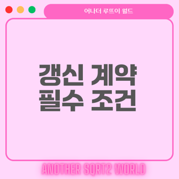 갱신 계약은 저소득층에게 안정적인 주거 환경을 제공하기 위해 설정된 여러 조건들이 존재합니다. 주요 조건을 정확히 이해하고 준비하는 것이 중요합니다: