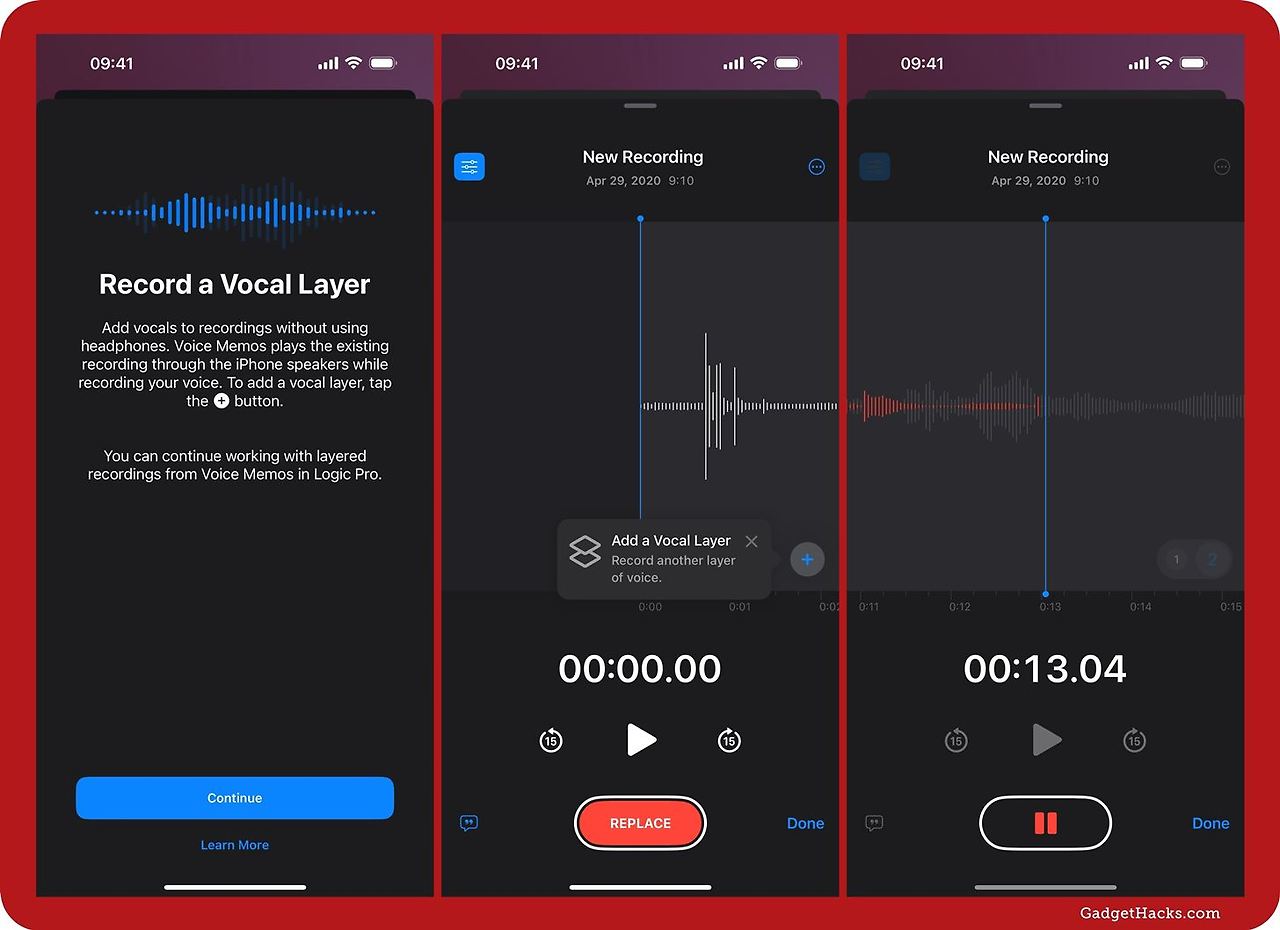 - 음성 메모 다중 녹음 기능 새로운 트랙을 추가하여 음성을 레이어링 할 수 있습니다.