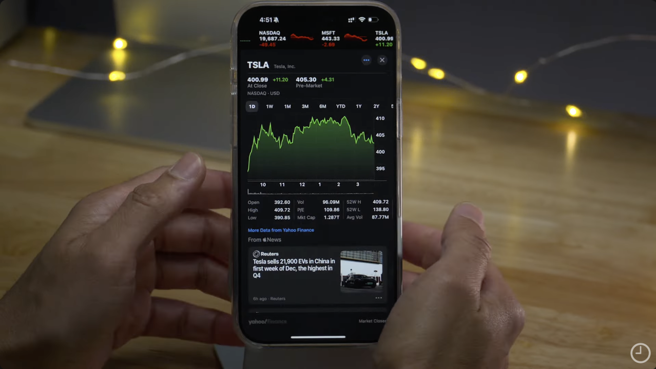 - Stocks 앱 - 프리마켓 가격 표시 개장 전 주식 시장 정보를 제공합니다.
